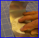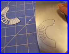 Place your cans with the print side down and place the first template onto the can. Hold it down as shown to the right and trace the part onto the can using a fine tipped marker or Sharpe. Remove the template piece to find the traced part ready to cut out from cans.
