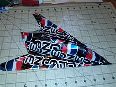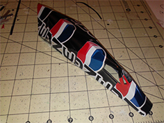 - Using the upper fuselage template, trace the upper fuselage piece onto your can panel created using the FAQ section. For the upper fuselage, you will need a panel of 5 cans.