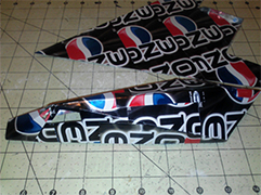 - As shown in the next picture, reinforce the inside of the engine intake pieces to give them shape and definition. You can use either aluminum sheeting or can material, but doing this will give your model volume and depth.